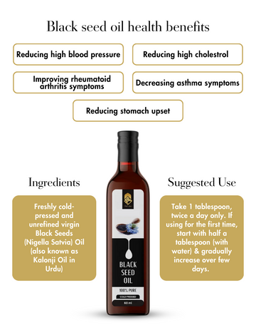 Ingredients: Freshly cold-pressed and unrefined virgin Black Seeds (Nigella Satvia) Oil (also known as Kalonji Oil in Urdu)
