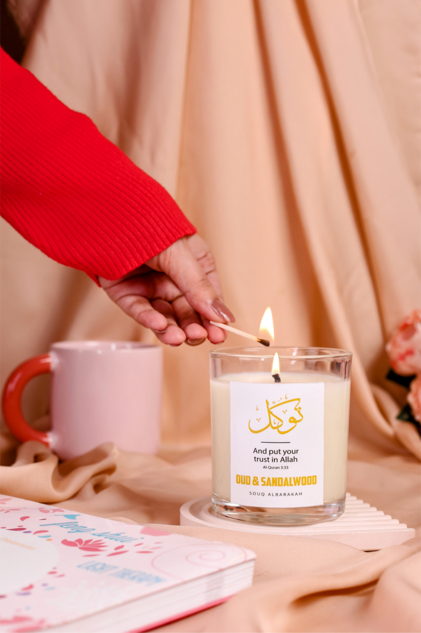 Inspired by the beautiful Islamic value of relying on Allah, this candle carries the grounding essence of rich oud and smooth sandalwood, creating a deeply calming, soul-settling atmosphere.